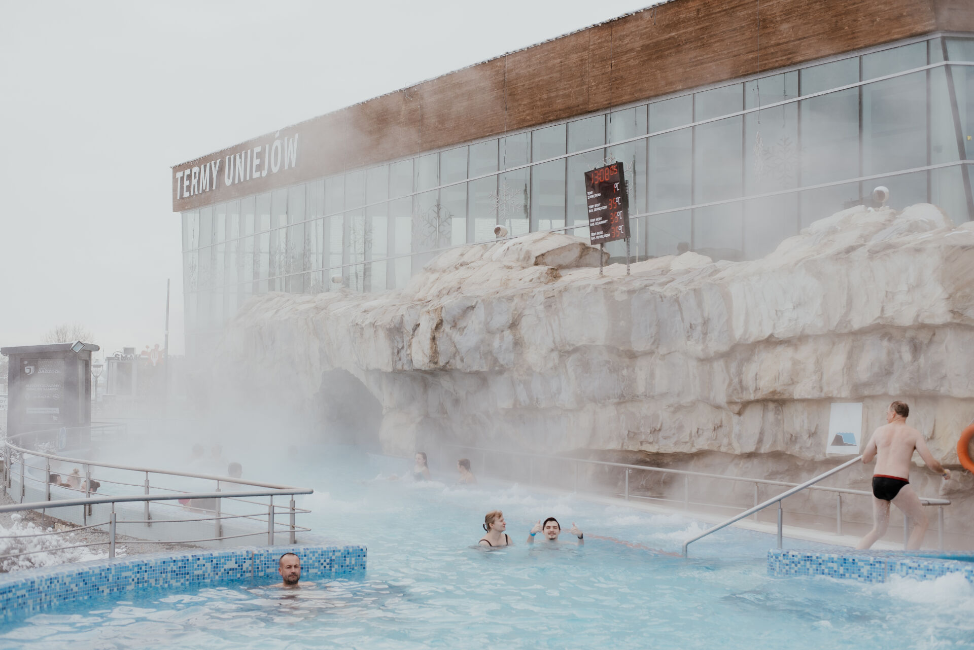 Wejście do kompleksu termalno-basenowego Uniejów. Pobyt planowany jest 3 godziny. Korzystanie z basenów krytych i otwartych, a także z kompleksu odnowy biologicznej.